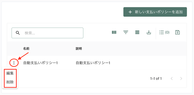 「編集」を選択すると、支払いポリシーの編集画面が表示され、必要な変更を行えます。